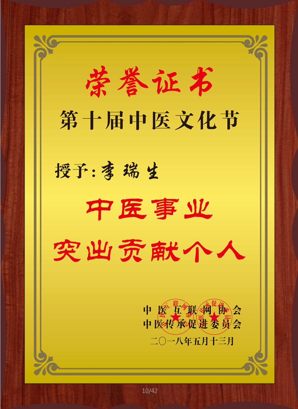 ◆2018年5月13日,第十屆中醫(yī)文化節(jié)眾道妙方榮獲“十周年紀念獎中醫(yī)事業(yè)杰出貢獻獎”,眾道妙方董事長李瑞生榮獲”“中醫(yī)事業(yè)突出貢獻個人獎”
