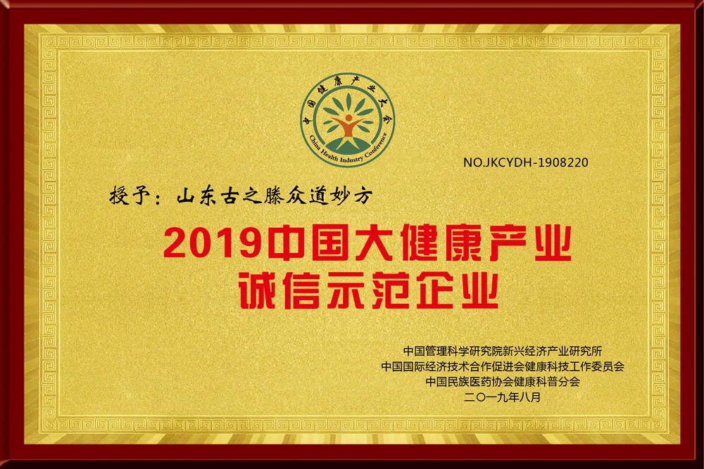 ◆2019年8月24日,“2019中國健康產業(yè)大會”在北京會議中心召開,山東古之滕連獲三項殊榮。