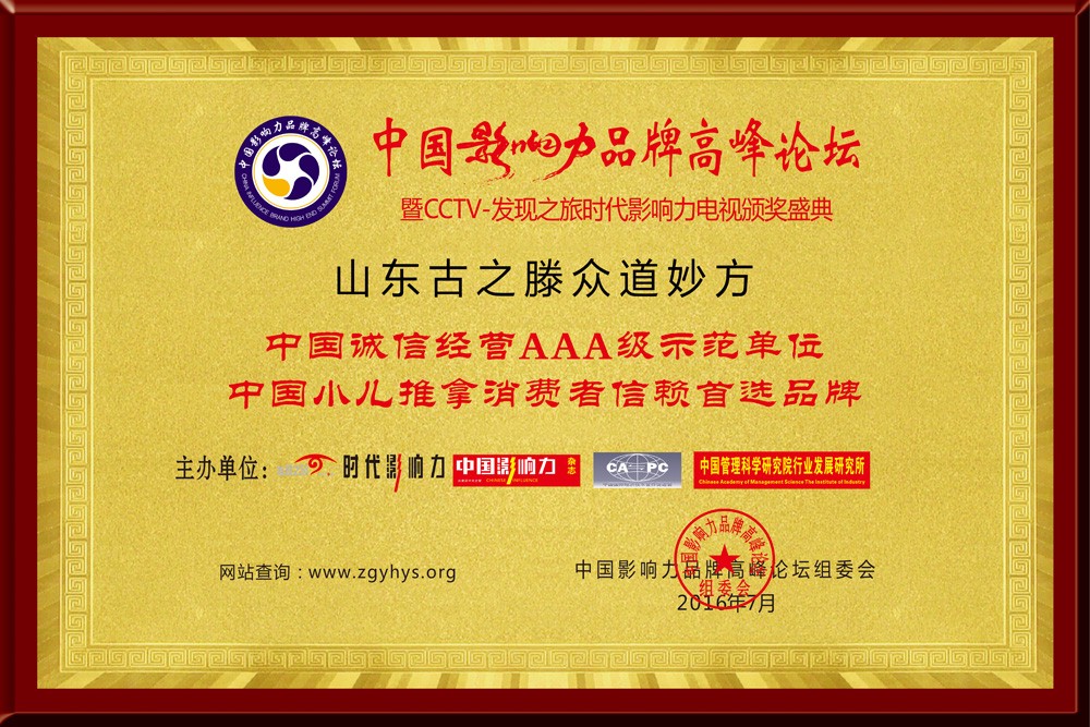 ◆2017年榮獲“中國誠信經營AAA級示范單位” “中國小兒推拿消費者信賴首選品牌