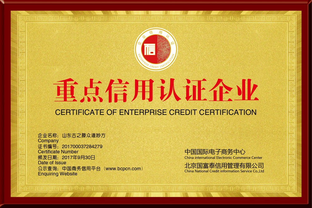 ◆2017年9月30日被中國國際電子商務中心 、北京國富泰信用管理有限公司授予重點信用認證企業(yè),并頒發(fā)證書銅牌和證書!