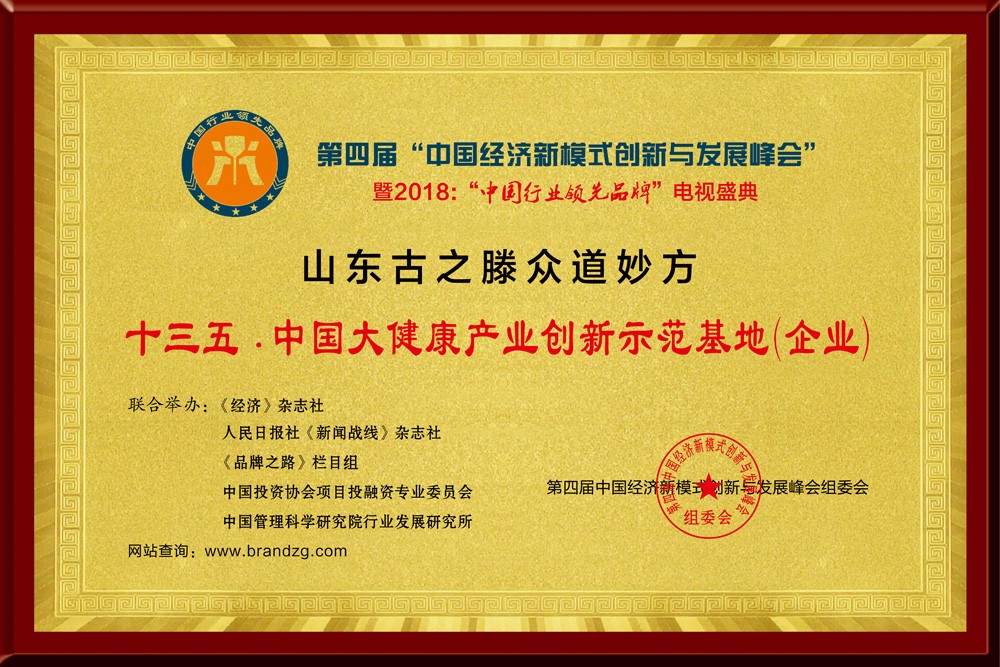 ◆2019年1月12日,山東古之滕商務發(fā)展有限公司榮獲“十三五· 中國大健康產業(yè)創(chuàng)新示范基地”;董事長李瑞生榮獲“2018中國大健康產業(yè)風云人物”。