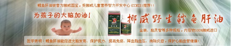 從2001年起,挪威連續(xù)6年被評為世界上生活質(zhì)量最高(最適宜居住)的國家,挪威人均用藥量只有 美國的三分之一。挪威政府十分重視孕婦和嬰幼兒的健康,2001年11月發(fā)布了為婦嬰保健人員和準媽媽 寫的《嬰幼兒營養(yǎng)指導(dǎo)》修訂本,全面闡述孩子喂養(yǎng)問題,其中36處提到鱈魚肝油。你想知道挪威人怎樣喂養(yǎng)寶寶嗎?挪亞公司現(xiàn)有中譯本,可到公司索取。