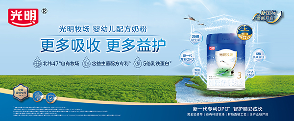 新國標(biāo)光明牧場,益護(hù)煥新升級!叭+乳鐵”,更多吸收,更多益護(hù)。