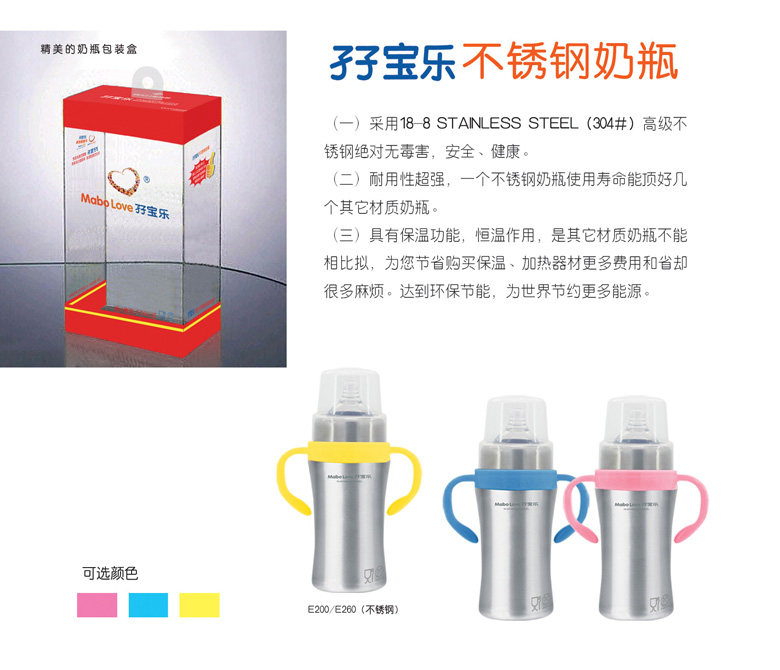 主營產(chǎn)品:奶瓶,孖寶樂不銹鋼奶瓶,母嬰兩用奶瓶 產(chǎn)品(60個(gè))新聞(14條)