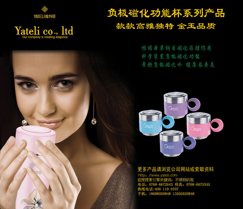 潮安縣雅特麗不銹鋼有限公司是一家集生產(chǎn)加工、經(jīng)銷批發(fā)的有限責(zé)任公司,磁化不銹鋼保溫杯、高級(jí)磁化不銹鋼茶葉罐是潮安縣雅特麗不銹鋼有限公司的主營產(chǎn)品。潮安縣雅特麗不銹鋼有限公司是一家經(jīng)國家相關(guān)部門批準(zhǔn)注冊(cè)的企業(yè)。潮安縣雅特麗不銹鋼有限公司以雄厚的實(shí)力、合理的價(jià)格、優(yōu)良的服務(wù)與多家企業(yè)建立了長期的合作關(guān)系。潮安縣雅特麗不銹鋼有限公司熱誠歡迎各界前來參觀、考察、洽談業(yè)務(wù)。