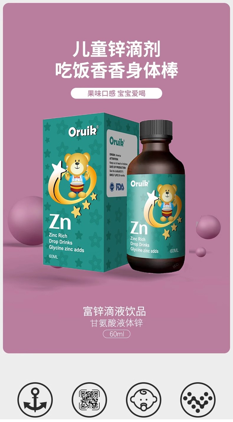 Oruik作為美國品牌,一直以高品質的產(chǎn)品著稱,此次推出的甘氨酸鋅滴劑更是其匠心之作。該產(chǎn)品為美國原裝進口,擁有官方品質保證,讓家長們購買更放心。