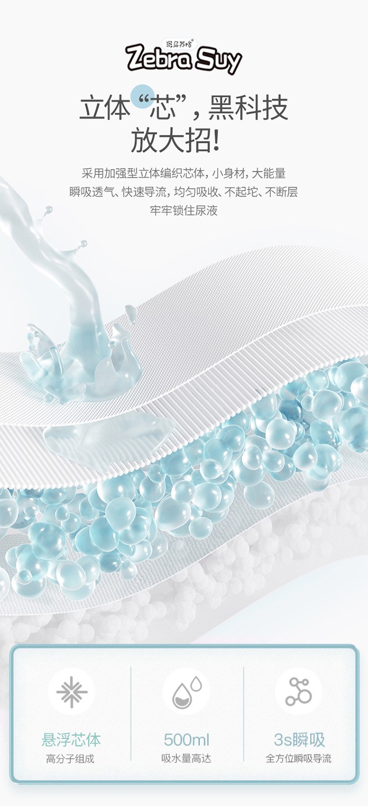斑馬蘇怡紙尿褲/拉拉褲,大環(huán)腰加高護圍,加寬腰圍設(shè)計,柔軟有彈性,貼合身形不勒肚肚;輕柔蓬松3D熱風(fēng)立體棉層雙倍親膚的柔軟,如云觸感,宛若初生;薄約0.1cm輕薄芯,薄如一枚硬幣,小PP沒負擔(dān);立體“芯”,不止于薄還超能吸,增加前后吸水面積,容納寶寶大尿量;360°環(huán)抱寶寶小腰身,配合3D立體剪裁,動感貼合寶寶曲線,隨心所動;采用加強型立體編織芯體,內(nèi)含魔力縮水珠,瞬吸透氣,快速導(dǎo)流,均勻吸收,不起坨、不斷層,牢牢鎖住尿液;雙層5cm加高防漏側(cè)擋,隨心動;靈敏智能尿顯,變色快,勤更換,給寶寶看得見的安心呵護。