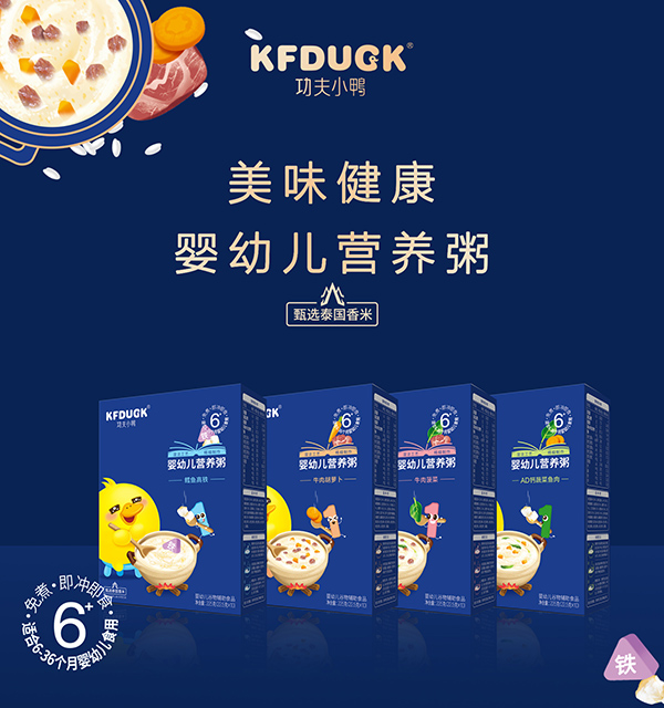 功夫小鴨嬰幼兒營(yíng)養(yǎng)粥系列,有AD鈣蔬菜魚肉、牛肉菠菜、牛肉胡蘿卜、鱈魚高鐵,共四款單品,均選優(yōu)質(zhì)原料制作,搭配多種新鮮食材,營(yíng)養(yǎng)豐富,口感美味。