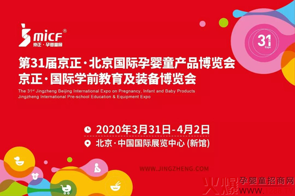 第31屆京正·北京國際孕嬰童產(chǎn)品博覽會、京正·國際學(xué)前教育及裝備博覽會將于2020年3月31日至4月2日在北京中國國際展覽中心(新館)召開。